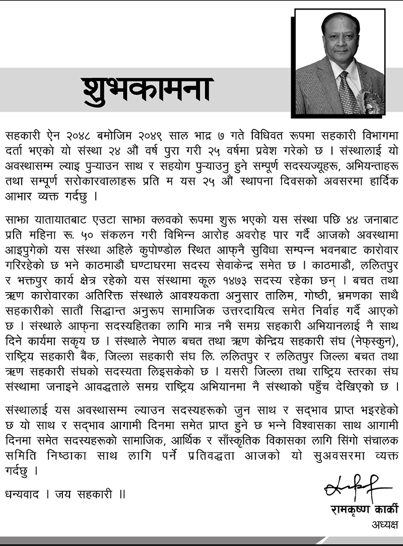 २५ औ वार्षिकोत्सवमा अध्यक्षज्यू बाट दिइएको शुभकामना